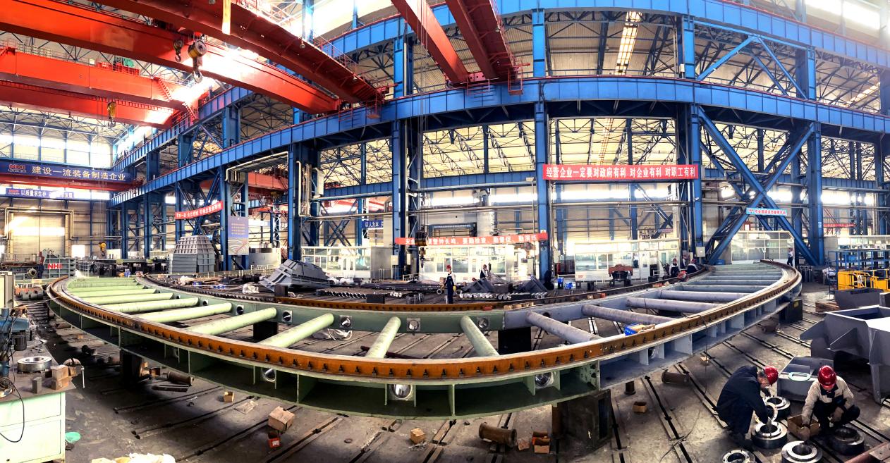 環(huán)冷機(jī)是整個(gè)項(xiàng)目當(dāng)中結(jié)構(gòu)比較復(fù)雜的產(chǎn)品,裝配工作量大、裝配精度要求高,作為承擔(dān)此次裝配任務(wù)的冶金電站裝備分廠對(duì)此項(xiàng)目高度重視,他們抽調(diào)班組骨干成立項(xiàng)目攻關(guān)小組,預(yù)先熟悉圖紙、了解工藝要求、制定裝配方案。生產(chǎn)過(guò)程中,兩個(gè)裝配車間即比拼競(jìng)賽又共同協(xié)作,真正發(fā)揮出生產(chǎn)團(tuán)隊(duì)能吃苦、能戰(zhàn)斗的優(yōu)勢(shì)。面對(duì)工期短、工作量大、精度高等挑戰(zhàn),他們將解決困難的突破口定位在車間回件初期上,沒完成工序的零部件回到車間立刻安排人員將工序完成,從源頭上杜絕“等、靠、要”的老舊思想觀念,爭(zhēng)分奪秒的為后續(xù)裝配留出時(shí)間。為順利完成裝配任務(wù),總裝車間、技術(shù)、質(zhì)檢、生產(chǎn)等多部門協(xié)同作戰(zhàn),各部門積極響應(yīng),一起加班加點(diǎn),創(chuàng)造出每天能完成裝配四個(gè)回轉(zhuǎn)體框架臺(tái)車的裝配記錄!